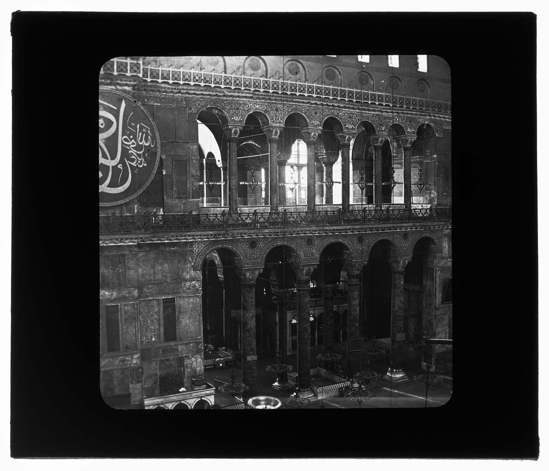 POP | Plateforme ouverte du patrimoineIntérieur de la nef depuis les tribunes, avec un des quatre panneaux calligraphiés