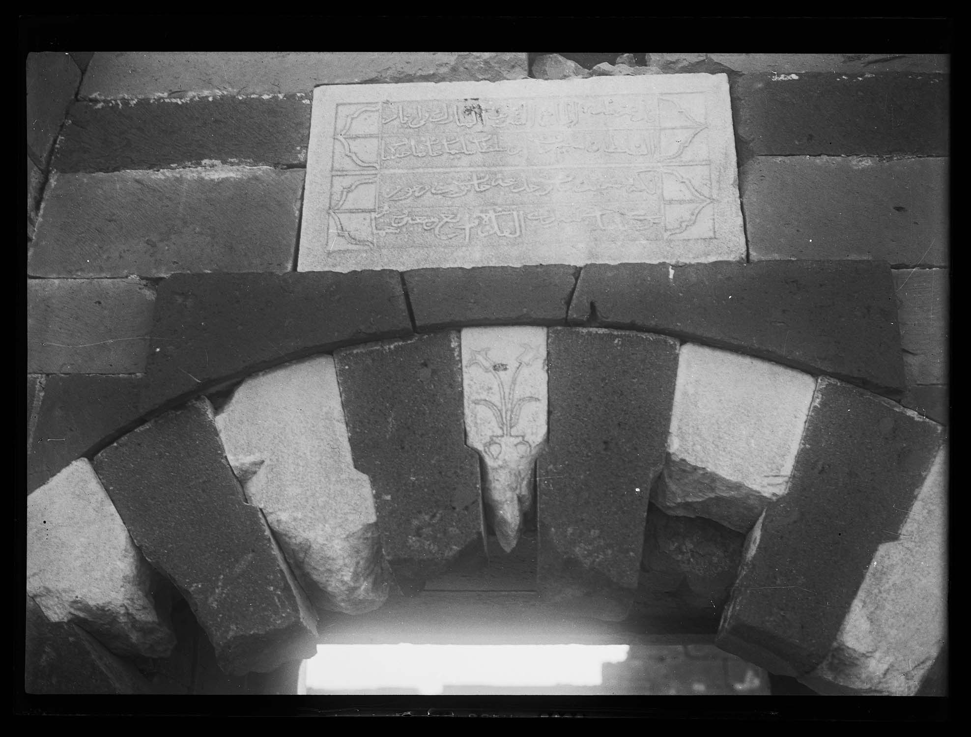 Détail des claveaux et de l'inscription de la porte d'entrée