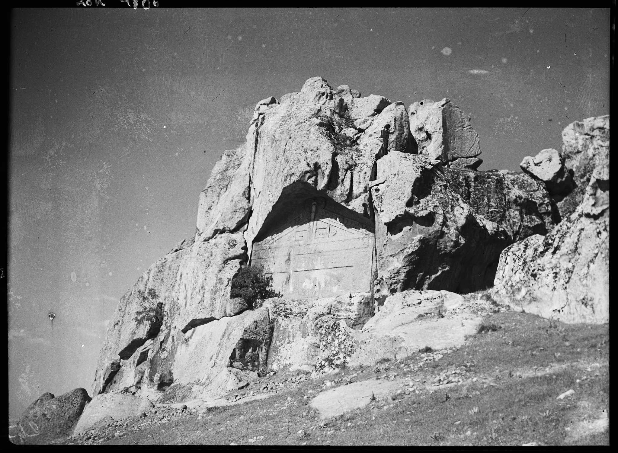 Monument inachevé : vue d'ensemble (voir "Phrygie. Exploration archéologique…", tome IV : "La Cité de Midas. Architecture", par A. Gabriel, Paris, E. de Boccard, 1965, pl. 35)