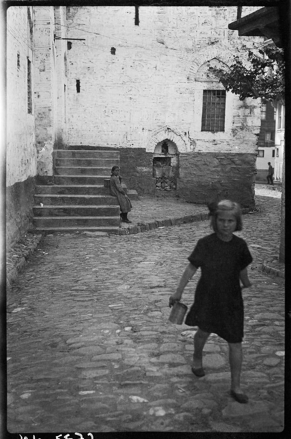 POP | Plateforme ouverte du patrimoineScène de rue : jeune fille devant une mosquée non identifiée