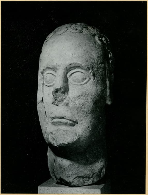 Fouilles de 1946 : tête virile aux petites boucles