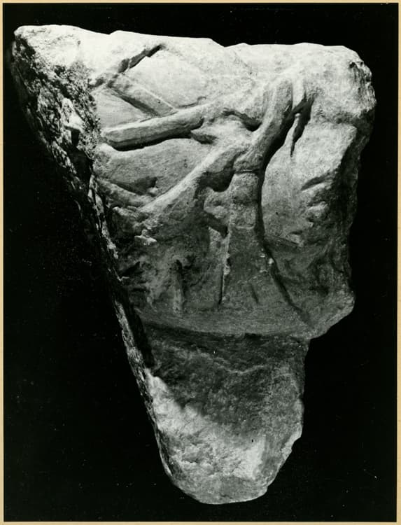 Fouilles de 1946 : fragment de pied, lanière de cuir