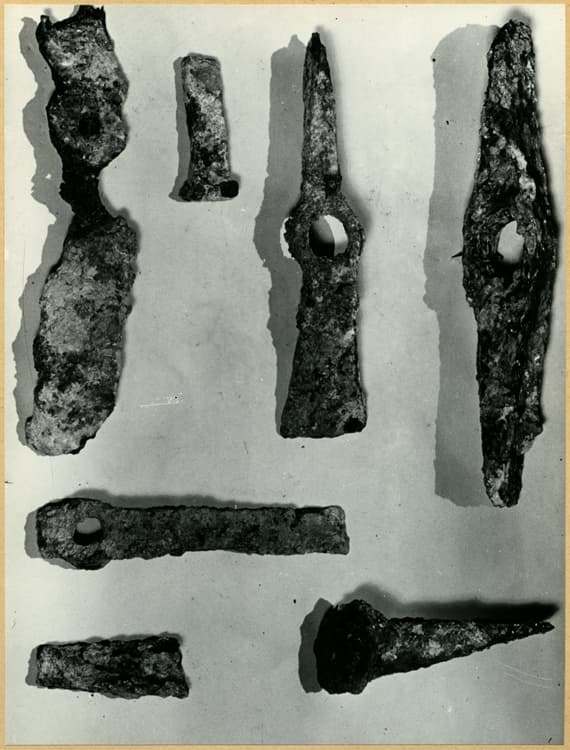 Fouilles de 1946 : marteau, fragment divers