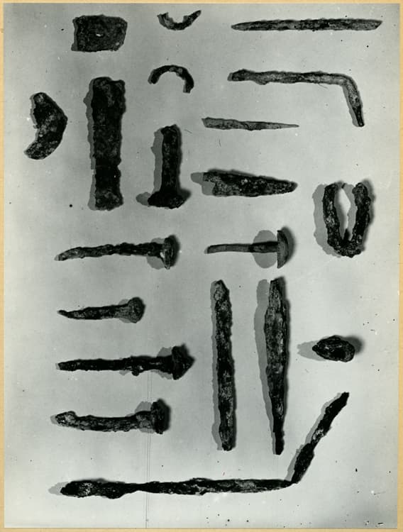Fouilles de 1946 : clous et fragment divers