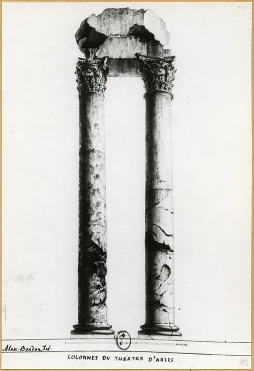 Reproduction d’un dessin représentant les deux colonnes du théâtre