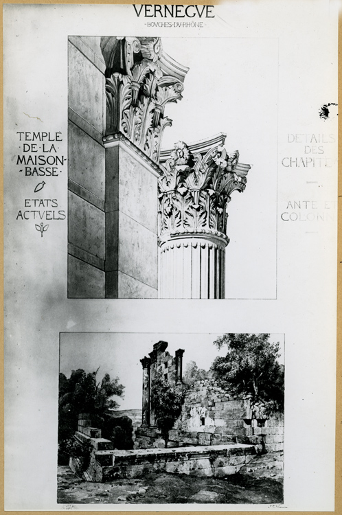 POP | Plateforme ouverte du patrimoineRelevé aquarellé : chapiteaux, colonne, une vue d’ensemble