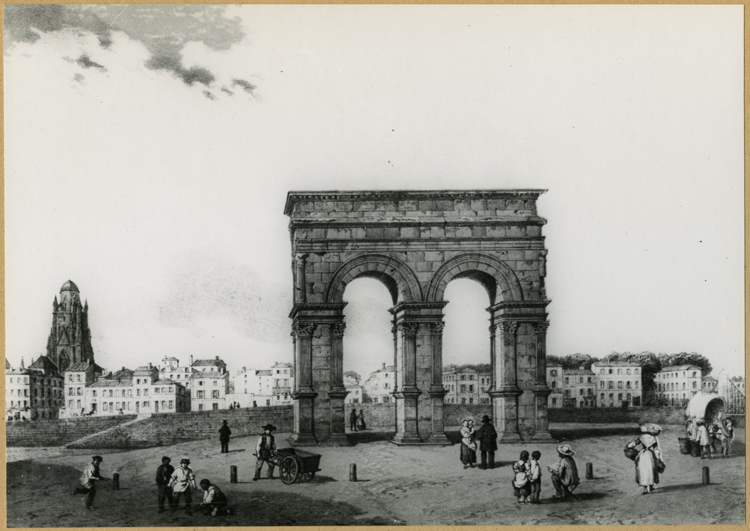 POP | Plateforme ouverte du patrimoineReproduction d’une lithographie : arc romain du pont remonté dans la ville