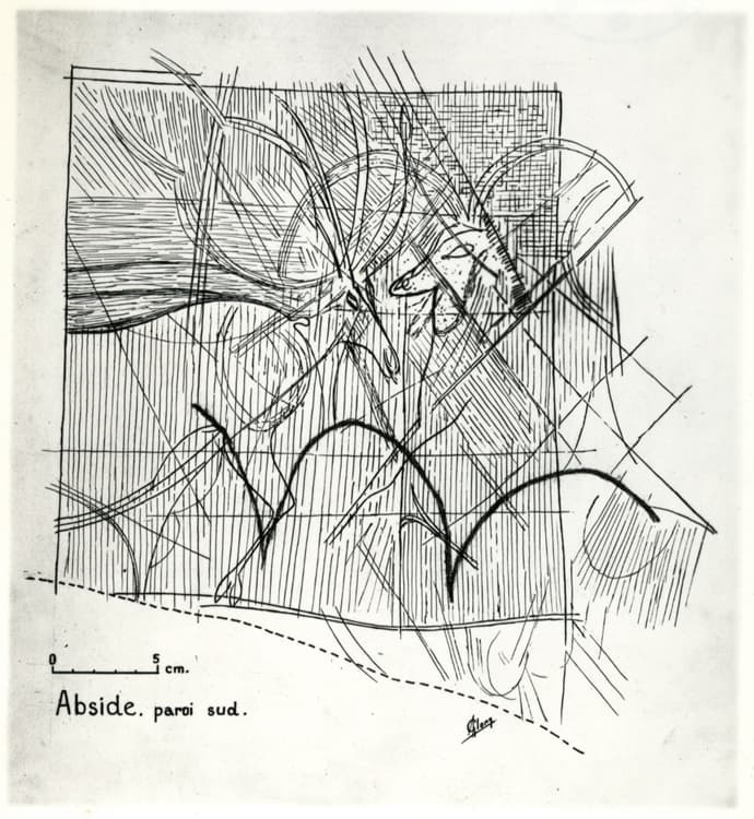 POP | Plateforme ouverte du patrimoineRelevés au trait, abside paroi sud : bouquetins