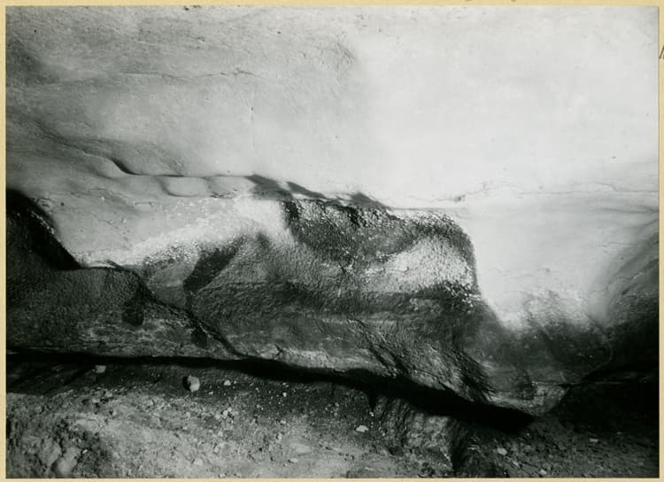 POP | Plateforme ouverte du patrimoinePassage, paroi gauche : vestiges d’une peinture de cheval, ligne du ventre et pattes postérieures