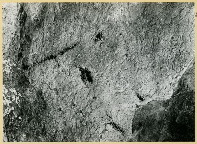 Salle des Taureaux, panneau de l’ours : traces de peinture sur la paroi après le quatrième taureau