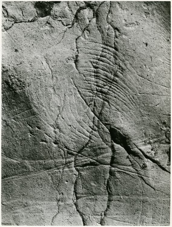 POP | Plateforme ouverte du patrimoineAbside vers le passage : signes gravés en traits parallèles de formes arrondies