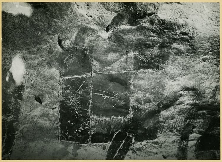 Nef, paroi gauche : signe en couleur dit « Blason » sous le sabot droit de la grande vache noire