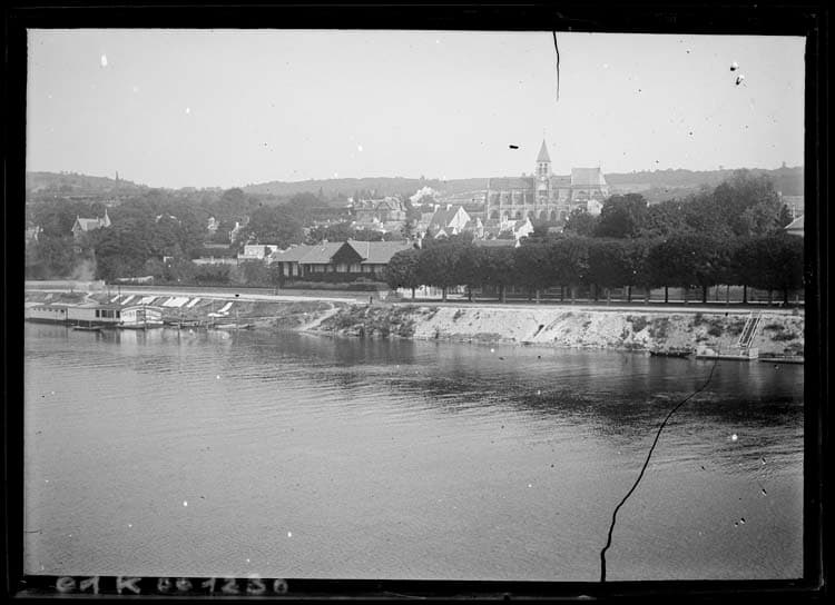 POP | Plateforme ouverte du patrimoineÉglise dominant la Seine et établissement flottant de bains chauds vus du fleuve