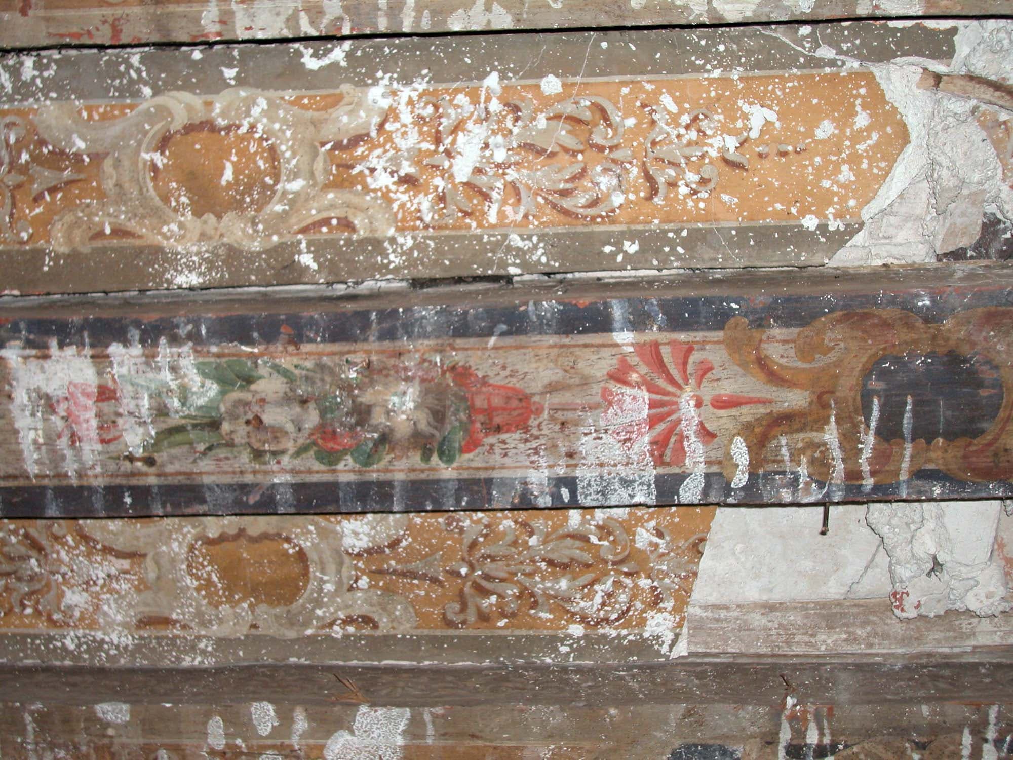 Salle ouest : plafond à entrevous avant restauration, plâtre des entrevous visible