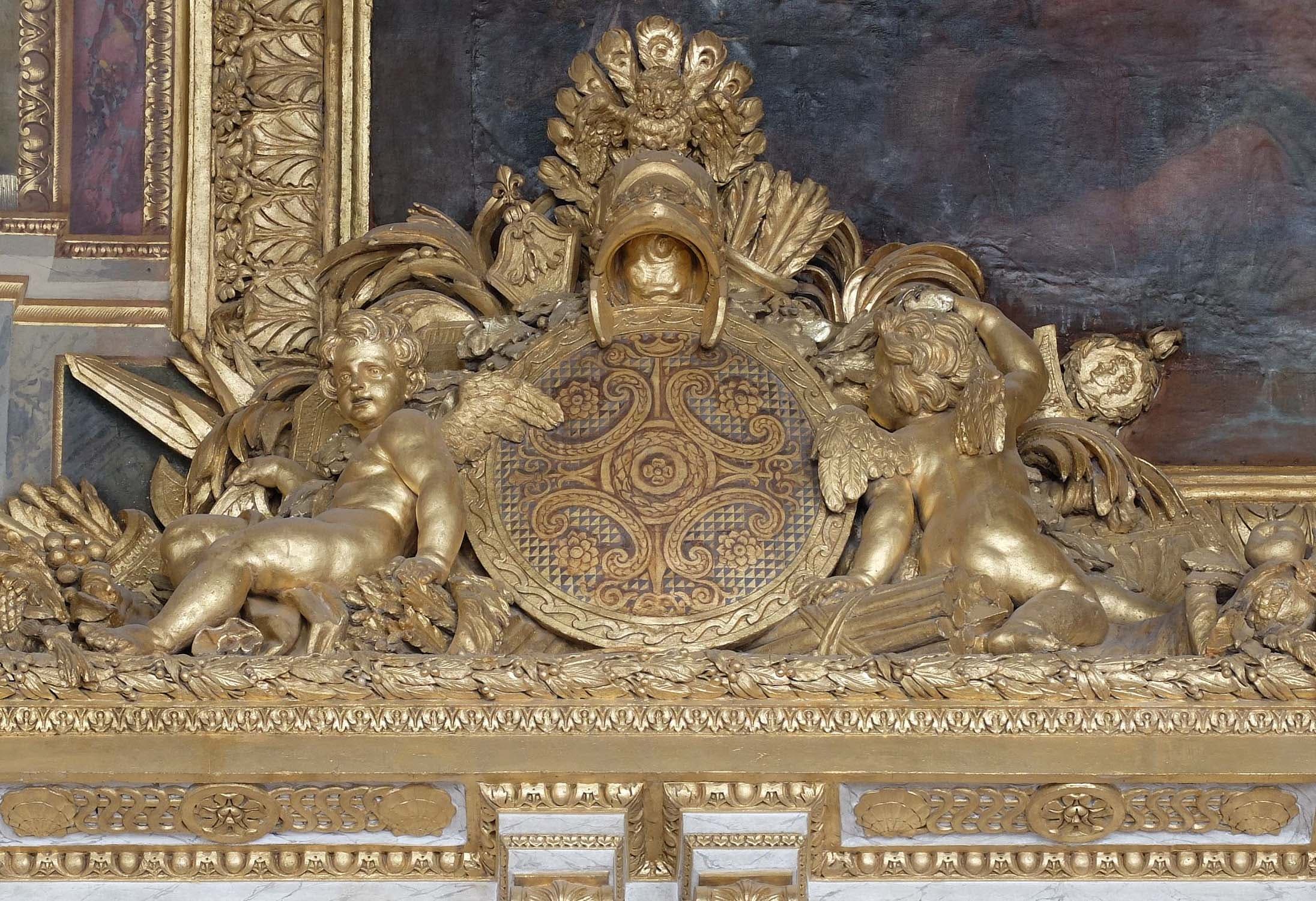 Galerie des Glaces : stucs au plâtre conçus par Charles Le Brun et sculptés par Caffieri, Lespagnandel, Legeret