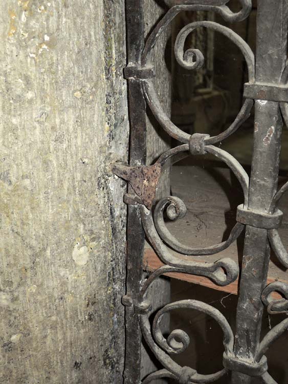 Grilles de clôture du chœur : un des panneaux sud, détail du scellement du montant gauche