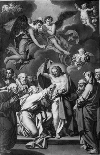 tableau : L' Incrédulité de saint Thomas, huile sur toile, après restauration