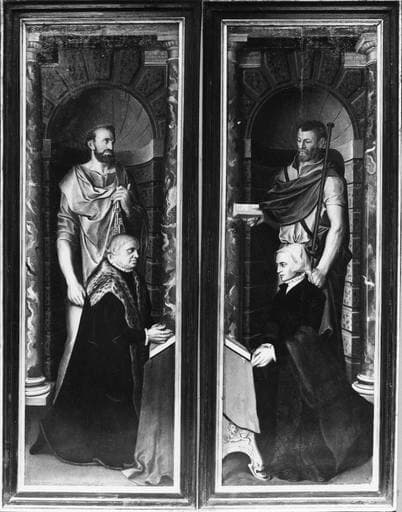 POP | Plateforme ouverte du patrimoinedeux volets de triptyque : donateur et donatrice avec leurs saints patrons, panneaux peints sur les deux faces, 16e siècle, avant restauration