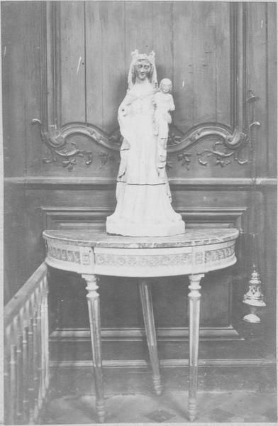 console, vue générale ; statue : Vierge à l'enfant, vue générale
