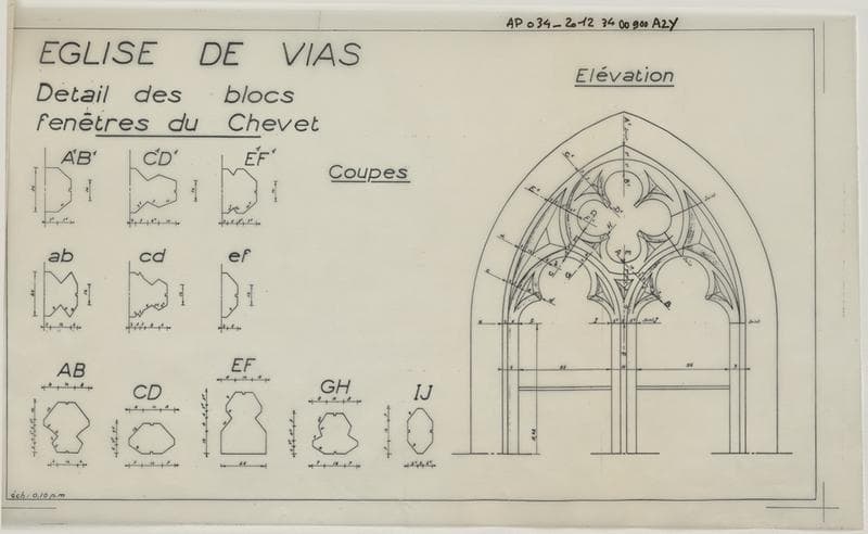 Détail des blocs fenêtres du chevet, élévation, coupes.
