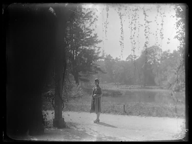 Jeannette Baldet dans les jardins, à proximité du grand canal