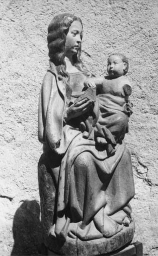 POP | Plateforme ouverte du patrimoinestatue : Vierge à l'oiseau, bois polychrome, 16e siècle, vue par la gauche