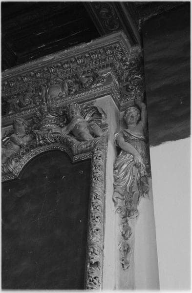 POP | Plateforme ouverte du patrimoineIntérieur, bureau du maire au premier étage : haut de la cheminée avec sculptures et miroir