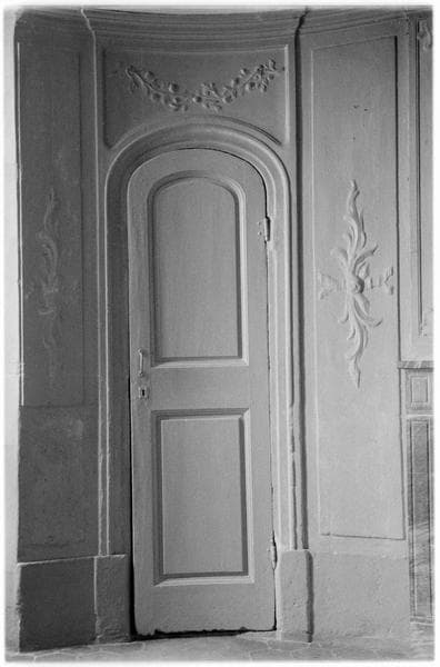 Intérieur, cabinet à alcôve au premier étage : porte et gypserie