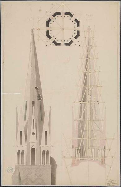 POP | Plateforme ouverte du patrimoineÉlévation, coupe et plan de la flèche
