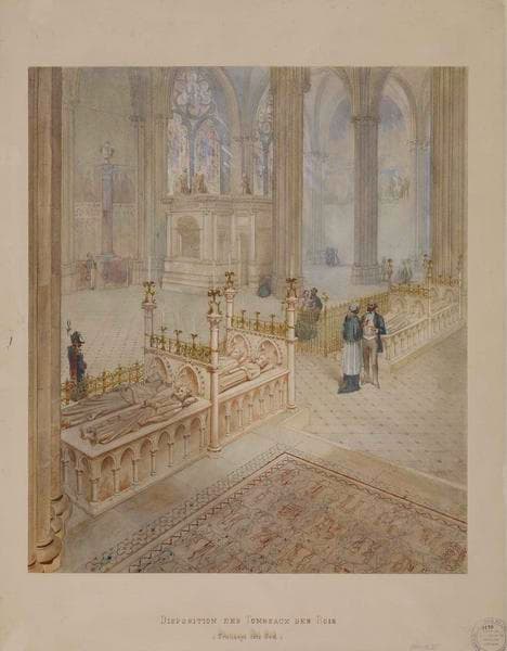 POP | Plateforme ouverte du patrimoineVue perspective du transept sud, projet de disposition des tombeaux avec le portrait de Viollet-le-Duc