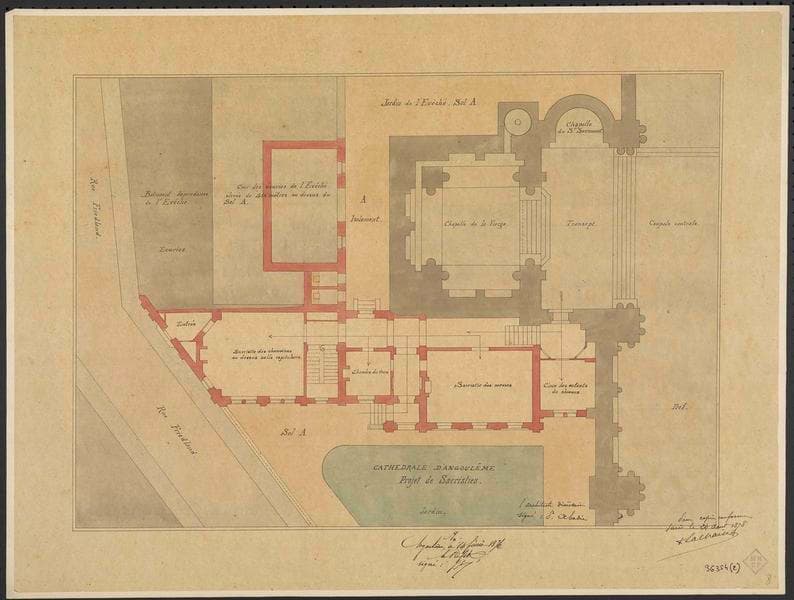 POP | Plateforme ouverte du patrimoineProjet de sacristies. Plan d'ensemble avec indication de l'emplacement des sacristies