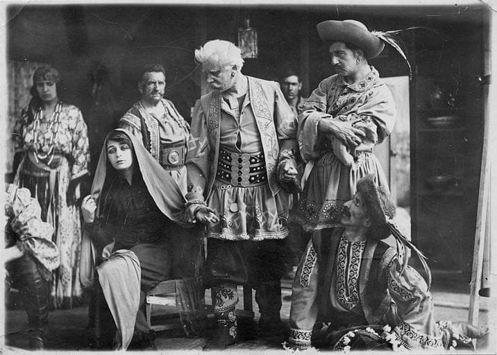 POP | Plateforme ouverte du patrimoineDiana Karenne, un foulard sur la tête, est assise entourée de plusieurs hommes en costume
