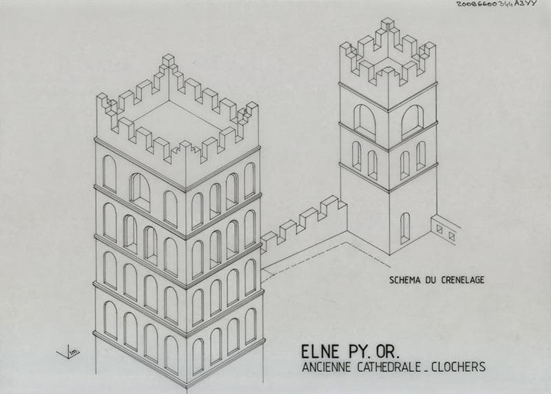 ancienne cathédrale ; clocher : schéma de crénelage.