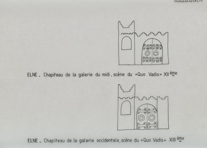 Chapiteau de la galerie du midi, scène du Quo Vadis XIIe siècle ; chapiteau de la galerie occidentale, scène du Quo Vadis XIIIe siècle.