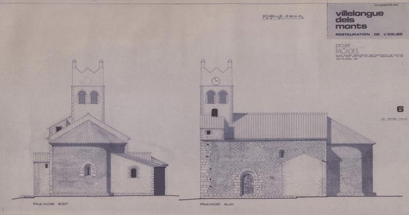 Elévations façades Est et Sud ; restauration de l'église ; projet.