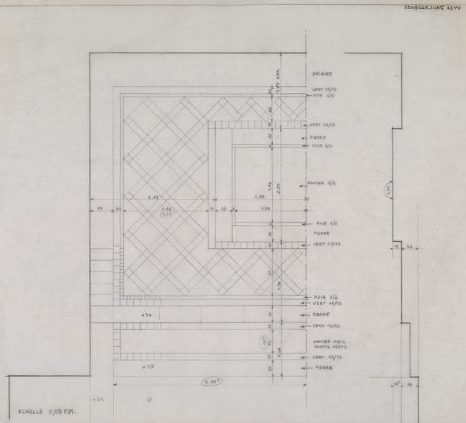 Palais des Rois de Majorque ; chapelle basse : calepinage du dallage du choeur.