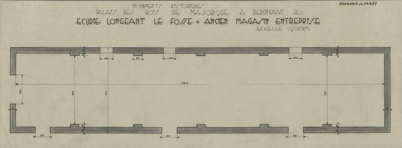 Ecurie longeant le fossé ; ancien magasin entreprise : plan coté.