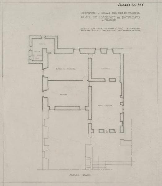 Palais des Rois de Majorque ; Aile Nord ; Agence des Bâtiments de France : plan du premier étage avec mentions des noms d'attribution des pièces.