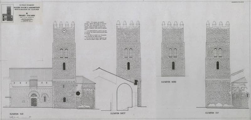 Pojet restauration façades : élévations Sud, Ouest, Nord et Est.