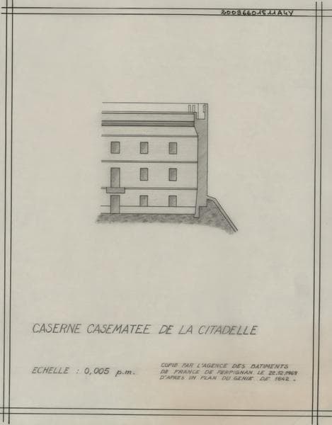 Citadelle ; casemate : élévation ; le tout copié et dessiné à l' Agence des Bâtiments de France en 1969 d'après un plan du Génie de 1842.