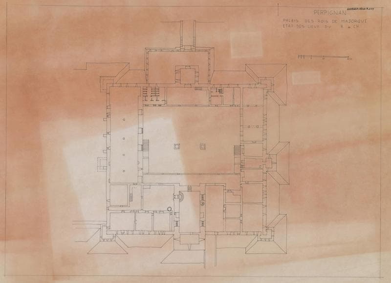 Palais des Rois de Majorque ; état des lieux du rez-de-chaussée : plan général.