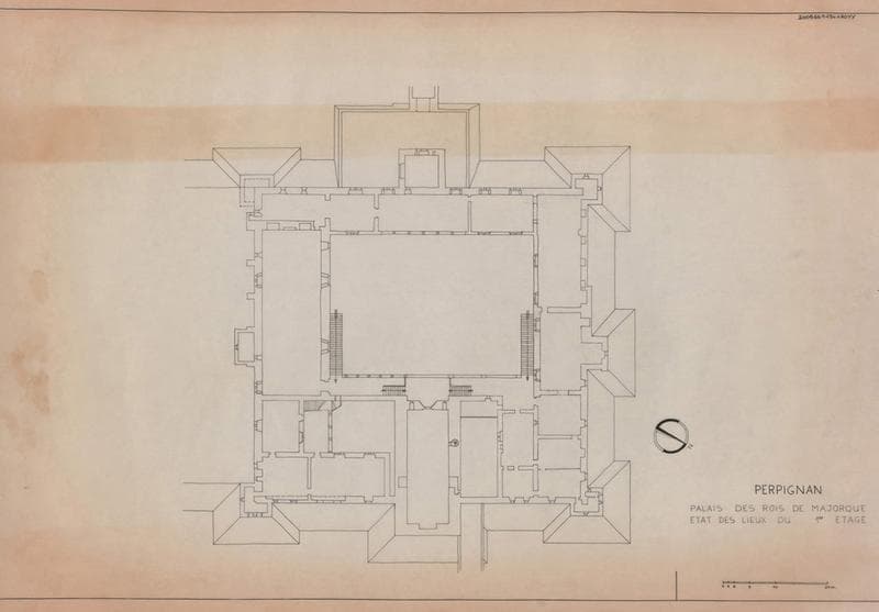 Palais des Rois de Majorque ; état des lieux, 1er étage : plan général.