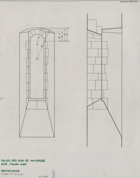 Palais des Rois de Majorque ; façade Ouest ; baie ; rectificatif : élévation et coupe.