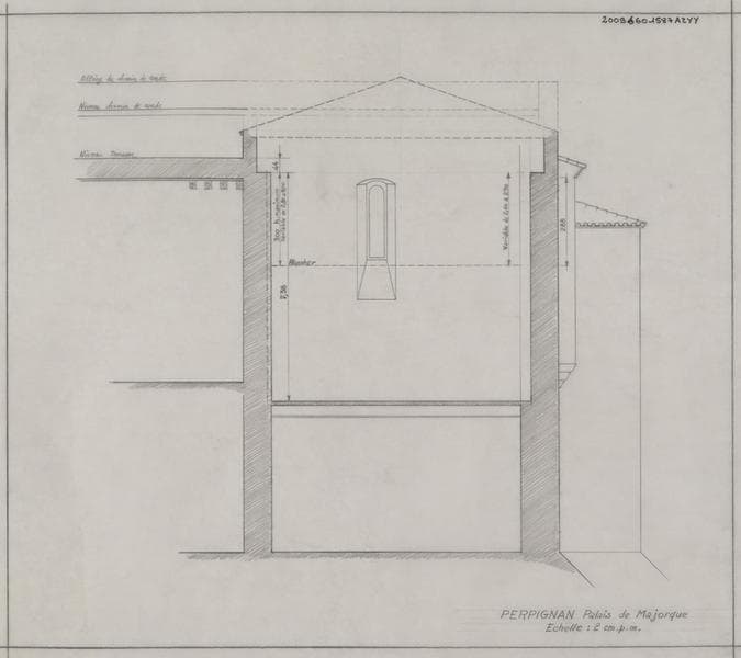 Palais des Rois de Majorque ; aile Nord : coupe transversale.