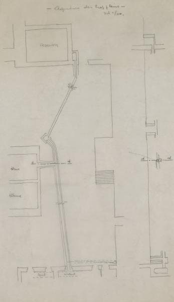 Palais des Rois de Majorque : plan des aqueducs des trop pleins avec localisation des constructions.