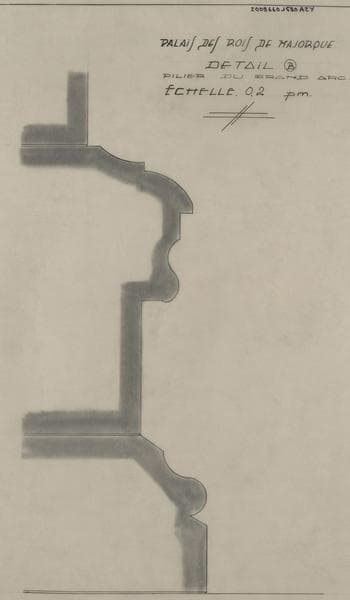 Palais des Rois de Majorque ; aile Est ; pilier du grand arc situé au 1er étage : détail.
