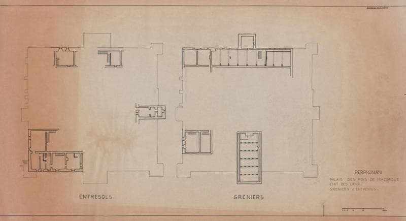Palais des Rois de Majorque ; greniers et entresols ; état des lieux : plan général.