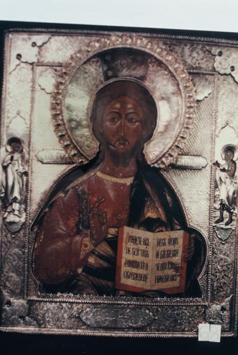 POP | Plateforme ouverte du patrimoineicône : Le Sauveur de l'Evangile ouvert avec un ange gardien et saint Isidore fol-en-Christ