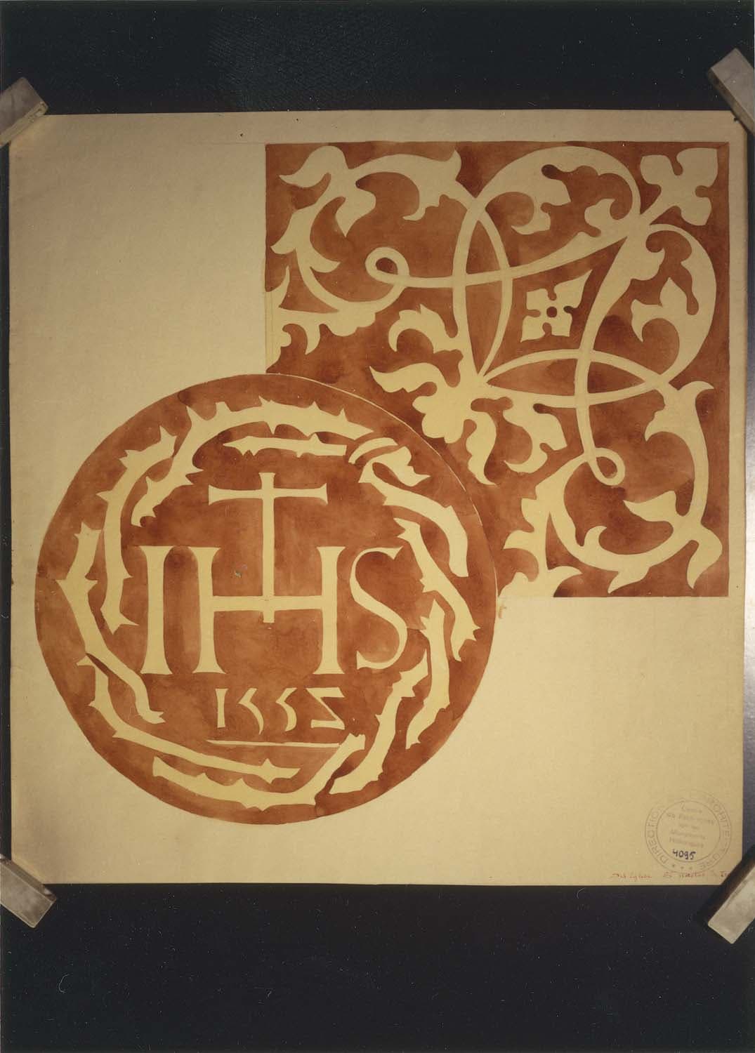 Relevé : deux carreaux de pavement de la chapelle du crucifix