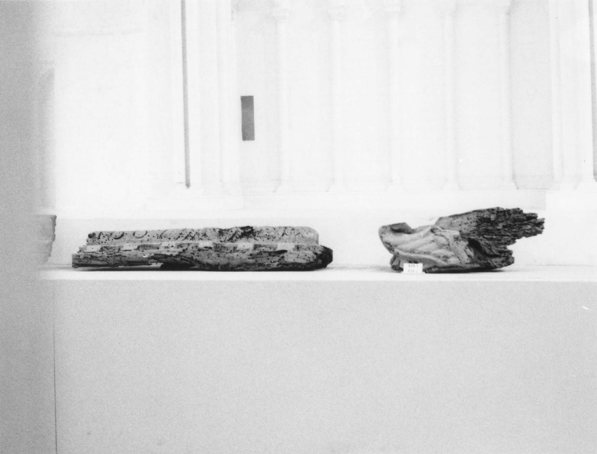 Élément de corniche daté, et deux fragments d’extrémité de la poutre, dit engoulant